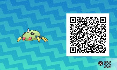 In Pokémon Sun and Moon, a QR Scanner function allows players to see information about Pokémon when they scan QR codes. By scanning in special patterns, players can register Pokémon of the Alola region to their Pokédex and find out where they live. If you scan in the QR code for a Pokémon that you haven’t yet caught, you can check its habitat and search it out. The QR code for Spinarak is pictured above, while Shiny Spinarak can be scanned in the image below.