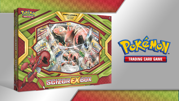 Scizor-EX is a dangerous Metal-type Pokémon, with intimidating pincers as strong as steel. With the newly-released Pokémon TCG: Scizor-EX, you get Scizor-EX both as a giant oversize card and as an amazing foil card for your collection. Get ready to crush the opposition with Pokémon TCG: Scizor-EX, which is now available in the Pokémon Center and where Pokémon TCG products are sold. The Pokémon TCG: Scizor-EX Box includes the following items: