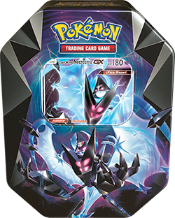 Necrozma continues its furious charge into the Pokémon TCG with the Pokémon TCG: Necrozma Prism Tin! Each sturdy tin includes 1 of 2 special foil cards featuring Dusk Mane Necrozma-GX or Dawn Wings Necrozma-GX, four Pokémon TCG booster packs to bolster your collection, and a code card that unlocks a full deck in the Pokémon TCG Online.