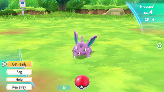 If you’re familiar with previous Pokémon RPGs, you’ll find that catching Pokémon works a bit differently in this game. As you wander through the game’s world, you’ll encounter wild Pokémon wandering around in fields of tall grass. If you see a Pokémon you want to attempt to catch, simply approach it.