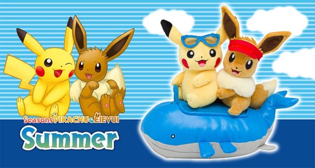 The Pokémon Company has released new batch of summer-themed Pokémon products in Japan. The official Seasons Pikachu and Eevee Summer line consists of two plushies for Pikachu and Eevee riding on top of a 30cm Wailord floaty above water. This set of merchandise is now available to purchase at the official Pokémon Center and Amazon Japan. You can check it out in the image above.