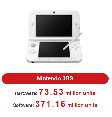 Whilst this number is impressive, it is still lower than the sales of all other Nintendo dedicated handhelds, with the second lowest being the Gameboy Advance at 81.51 million units.