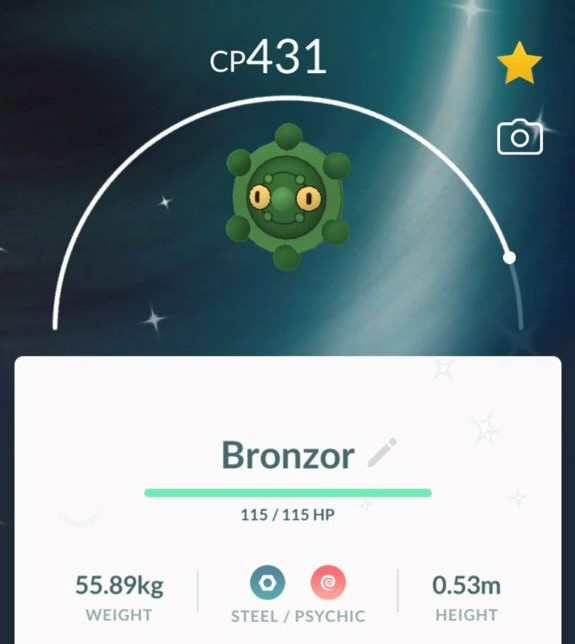 8 thoughts on “Pokémon GO screenshot of successfully caught Shiny Bronzor”