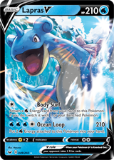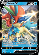 Lens flare, that is. Caused by the optics in a camera lens when light hits it in a certain way, lens flare can make scenes feel much more dramatic and intense. Artists will sometimes fabricate lens flares to add this same feeling. You can instantly see this effect in Ninetales (023/202), with the lens flare appearing just behind the Pokémon, giving Ninetales a magisterial air. Lapras V (049/202) uses lens flare in a slightly different way by adding a shock of radiant rainbow color to a scene that would otherwise be dominated by deep blues of the water, sky, and Lapras itself. If the first two examples were exercises in subtle ways to bring more out of the scene, Keldeo V (053/202) flips the script by making the lens flare the most dynamic part of the whole image. It almost seems like Keldeo is interacting physically with the brilliant light glinting off its horn. These are but a handful of examples in the Sword & Shield expansion; it’s fun to look for them and to try to get a sense of what the lens flare adds to each piece of art.