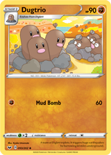 One of our favorite topics is Pokémon appearing on other Pokémon’s cards, and in the Sword & Shield expansion, there are a number that fit the bill—including quite a few Fighting-type Pokémon who get to share the spotlight. Hitmonlee (094/202) and Hitmonchan (095/202) are two highlights, with artist Shigenori Negishi superbly showing the same scene from two different perspectives. Sudowoodo (100/202) also gets a visitor when another Sudowoodo peeks out furtively from behind a tree. And then our pick for funniest card in the set shows Dugtrio (093/202) staring at another Dugtrio who has apparently just emerged from the ground, wide-eyed in apparent disbelief at something. And that Diglett in the background has a dilemma of its own—it’s emerged from the ground a bit too close to the waves, as originally seen on its own card by the same illustrator way back in EX Crystal Guardians (50/100)! We love these images for how they show Pokémon going about their everyday lives in a world full of other fantastic Pokémon.