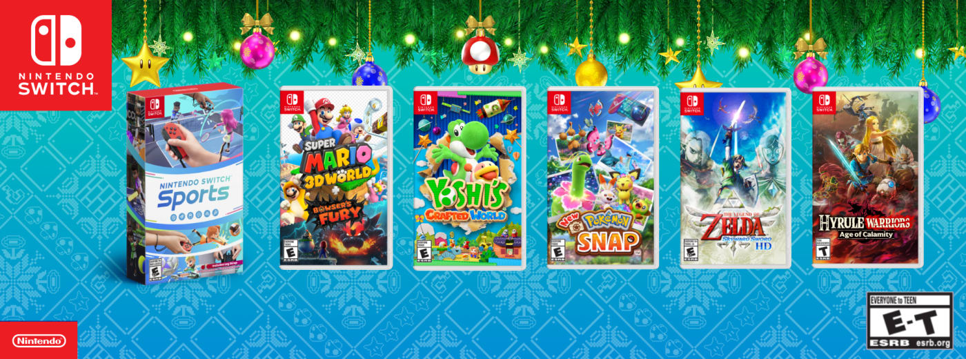 Choose from Nintendo Switch™ Sports, Super Mario™ 3D World + Bowser’s Fury, Yoshi’s Crafted World™, New Pokémon Snap™, The Legend of Zelda™: Skyward Sword HD & Hyrule Warriors: Age of Calamity.