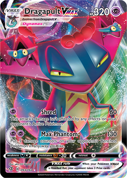 Dragapult is one of the fastest Pokémon from the Galar region, and it quickly found its way into many competitive decks when it debuted in Sword & Shield—Rebel Clash. Thanks to its Max Phantom attack that does 130 damage for 2 Energy and spreads 5 damage counters around the opponent’s Benched Pokémon, Dragapult VMAX set up multi-Prize Knock Outs over the course of a match extremely well.