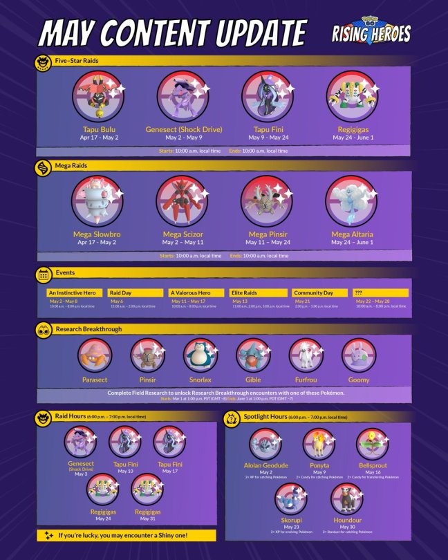 239 thoughts on “Niantic reveals all major five-star raids, Mega Raids, Raid Hours, in-game events, new Pokémon, bonuses, Spotlight Hours, Research Breakthrough encounters and more coming to Pokémon GO in May 2023”