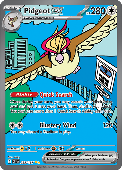 The Scarlet & Violet era has featured a few callbacks to older generations of the Pokémon TCG, but few have been as explicit as Pidgeot ex, whose Quick Search Ability should look very familiar to players of the classic Pokémon TCG. Back then, Pidgeot was a staple throughout most decks in the Standard format. After all, it’s obvious that finding a specific card on demand is pretty good! Especially now that Iono has graced us with her presence in the Standard format—making it difficult to hold onto a hand for extended periods of time—Pidgeot could be useful for building a nest of strategies out of the cards that are dealt.