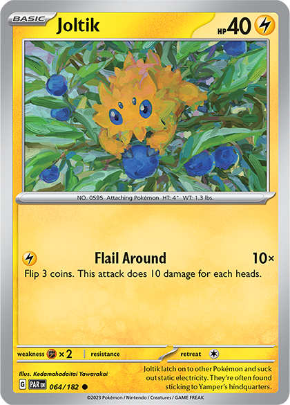 There are many, many artists who create illustrations for the Pokémon TCG, and of course, they all bring their own vision to the game. Sometimes it’s fun to compare the artists’ individual takes to see how shockingly different they can be. Look at Blitzle (illus. Shinji Kanda) here. Longtime Pokémon TCG players can likely immediately identify a Kanda piece thanks to their distinct sketchy style and bold contrast of deep, dark blacks and loud, vibrant colors. That glow around Blitzle’s mane really gives the impression that it’s crackling with energy. In sharp contrast is this Joltik (illus. Kedamahadaitai Yawarakai). This relatively gentle scene shows the diminutive Attaching Pokémon nibbling on an Oran Berry, and it’s painted in such a way that you can see the thick brush strokes, lending a softer, more natural feel to the work. Two very different approaches to creating Pokémon TCG art, but they’re equally beautiful.