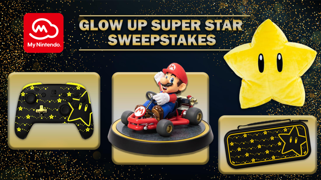 NO PURCHASE NECESSARY. Void where prohibited. Open to legal residents of the United States and Canada (excluding Quebec) who are 13 years old or older. Sweepstakes begins 5:00PM PT on 12/6/2023 and ends at 11:59PM PT on 1/31/24. To enter, you must (1) have a Nintendo Account (if you do not have a Nintendo Account you can register for one at https://my.nintendo.com/; (2) visit https://my.nintendo.com/rewards/53917f802397c091, (3) sign in to your Nintendo Account, and (4) redeem 10 Platinum Points per entry at the My Nintendo Glow Up Super Star Sweepstakes page (https://my.nintendo.com/rewards/53917f802397c091) as stated in Official Rules. There will be five (5) winners. Each winner will receive one (1) Mario Kart – Mario PVC Statue – Standard Edition (ARV $129.99 USD), one (1) Nintendo Switch GLOW REMATCH Wireless Controller – Super Star (ARV $54.99 USD), one (1) Club Mocchi – Mocchi Super Mario Super Star 15” Mega Plush Toy (ARV $34.99 USD), and one (1) Nintendo Switch Travel Case Plus GLOW – Super Star (ARV $19.99 USD). Total ARV of all prizes: $1,199.80 USD. Odds of winning depend on number of eligible entries received. Details and restrictions apply. For Official Rules, visit https://www.nintendo.com/events/rules/mynintendo-glowup-superstar-official-sweepstakes/. Sponsor: Nintendo of America Inc., 4600 150th Avenue NE, Redmond, WA 98052.