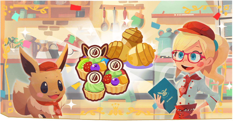 At the cafe, cutely dressed Pokemon will welcome you with sweet sweets!
