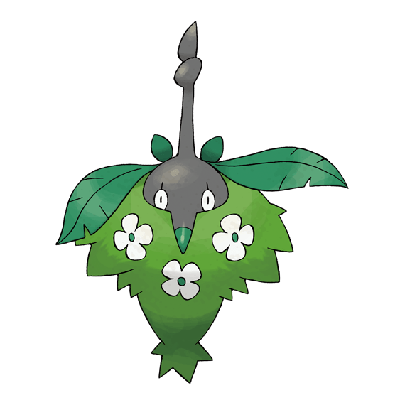 The Plant Cloak form has several white flowers covering it and gives Wormadam a green-tipped beak and large leaves for arms. Unlike Burmy, Wormadam’s cloak is a part of its body, with the fusion being suspected to have been caused by the energy generated by its evolution. Its cloak acts similar to fur and skin and never sheds.“-Bulbapedia.