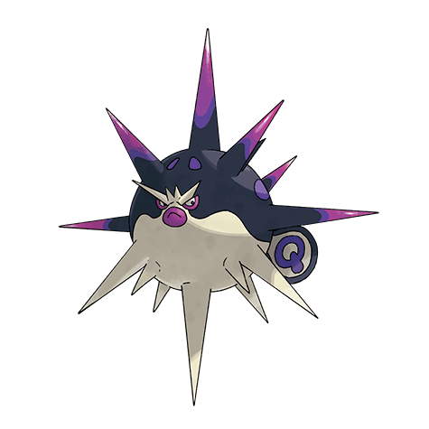 Overqwil has a very aggressive personality along with a short temper, which has given it the nickname “sea fiend.” Its diet consists of poison. Overqwil’s poisonous spikes will react automatically even while Overqwil sleeps. The barbed spikes will stab any moving thing that approaches Overqwil. Once the barbed spikes have punctured a target, they cannot be removed so easily. It has been recently seen along with its pre-evolution, offshore in cold parts of the world.