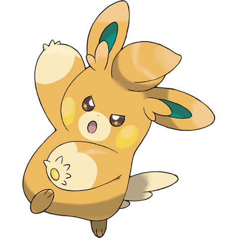 Pawmo is a stout, bipedal, rodent-like Pokémon. Compared to Pawmi and Pawmot, its fur is almost entirely light orange, with tan colorations on its forepaws, snout, and long, fluffy tail, and green on the insides of its ears. Its face has beady brown eyes, a tiny nose, and yellow electric sacs on its cheeks. It has tufts of fur on its forehead and near its ears. Pawmo has five fingers on its forelimbs which are considerably large, and stretches down to its tiny feet. Pawmo’s forepaws contain yellow pads that turn teal-blue when releasing electricity. It uses these paw pads for its signature fighting technique, where it simultaneously strikes and zaps foes with its forepaws. Pawmo are known to travel in groups. When attacked, Pawmo will be the first to fight back, defeating foes with its electricity.“-Bulbapedia.