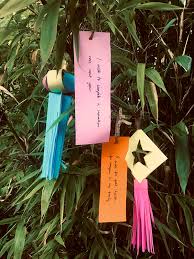 One of the customs of Tanabata is to write a wish on a colored strip of paper called tanzaku and hang it up on a bamboo tree with the hope that it becomes true.