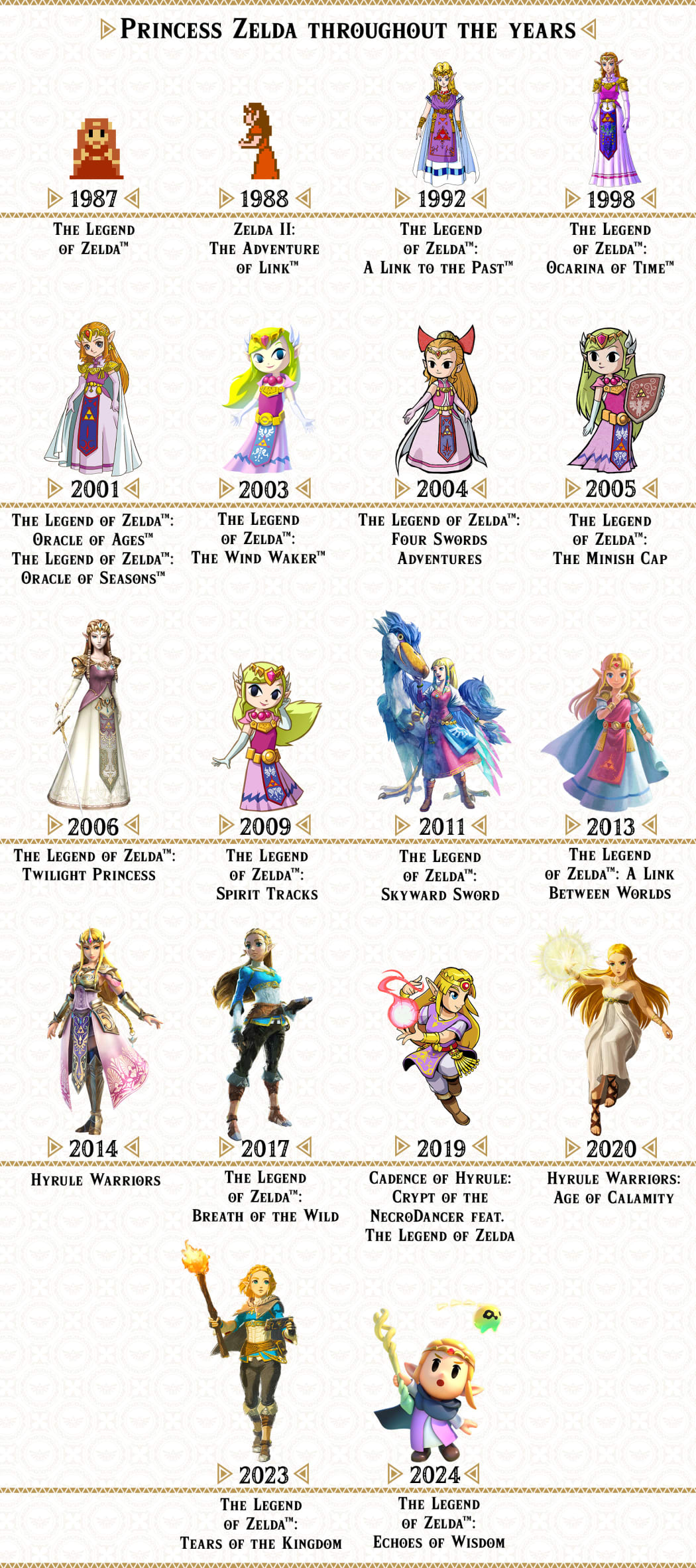 Zelda will be putting her talents to the test in the Legend of Zelda™: Echoes of Wisdom game on Sept. 26. But before she takes centerstage in that epic adventure, let’s look back at some of her many appearances through the years. My, how things have changed!