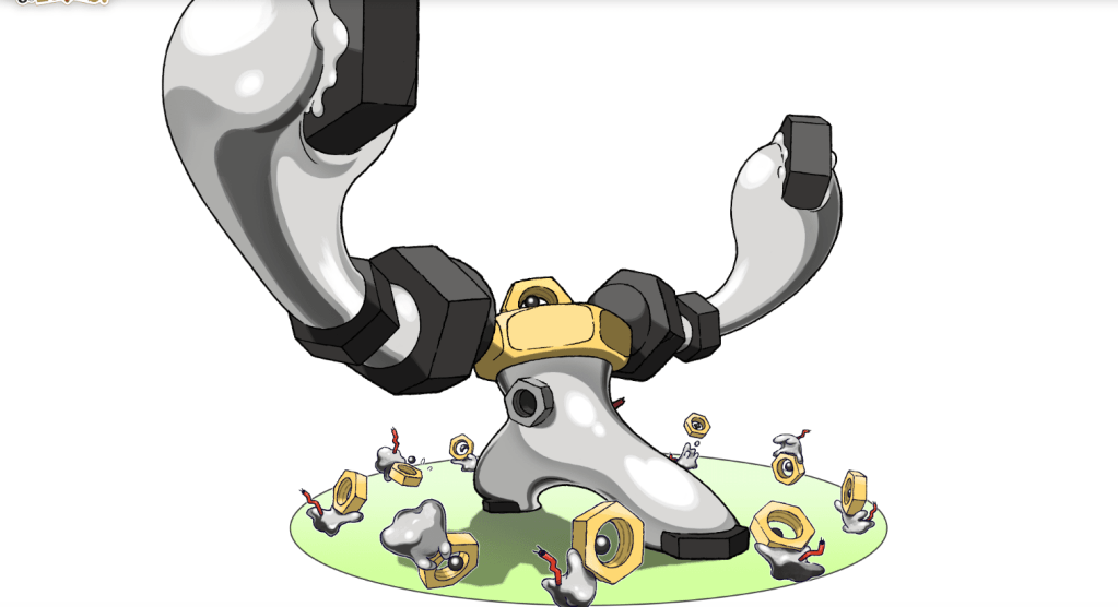 “Melmetal (Japanese: メルメタル Melmetal) is a Steel-type Mythical Pokémon introduced during Generation VII. It first appeared in Pokémon GO and later made its core series debut in Pokémon: Let’s Go, Pikachu! and Let’s Go, Eevee!.