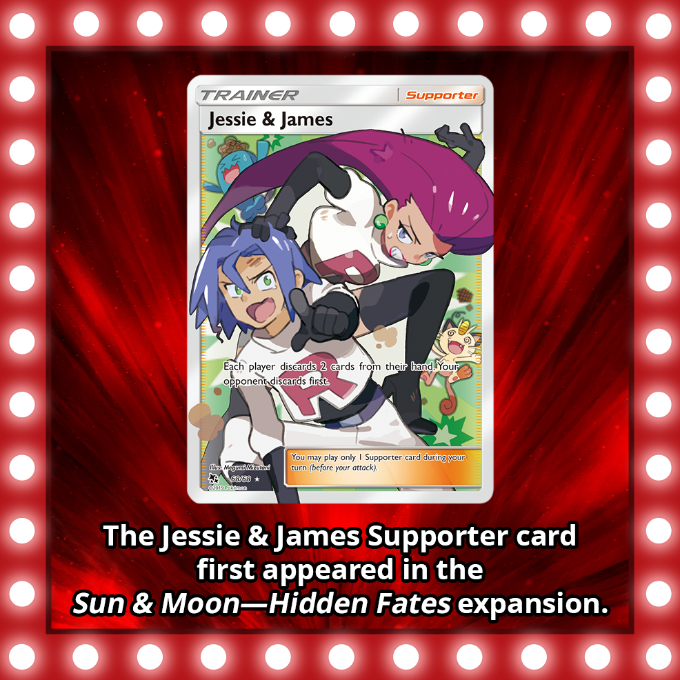 - In what Pokémon TCG expansion did Team Rocket members Jessie and James first appear on a card that’s named after them?
