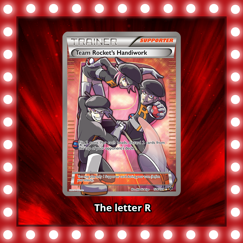 - On the Team Rocket’s Handiwork card from the XY—Fates Collide expansion, three Team Rocket Grunts have posed together to form what image?