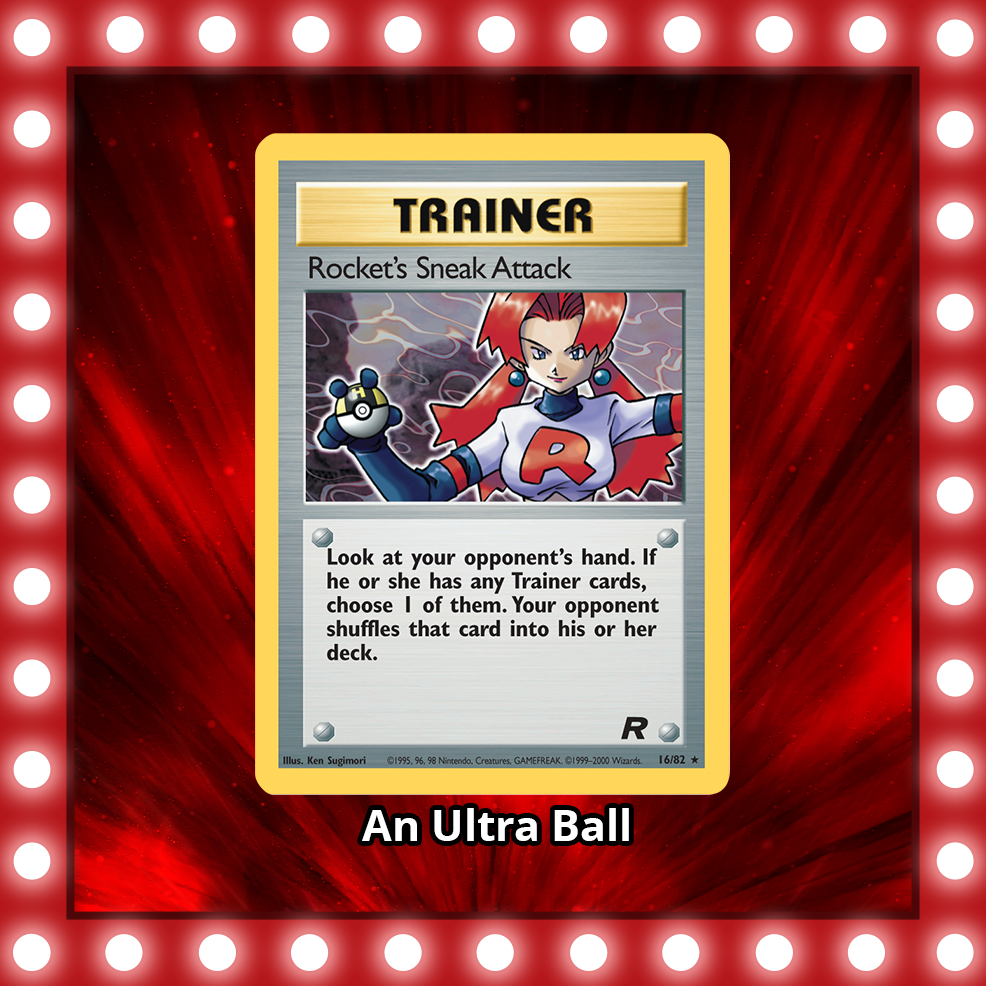 - The Team Rocket Grunt featured on the Rocket’s Sneak Attack card from the Team Rocket expansion is holding what type of Poké Ball?