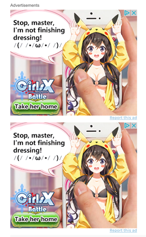 A new ad for the mobile game Girls X Battle is currently making the rounds and using the Pokémon franchise's popularity to attract the attention of fans. As you can see in the image above, the main focus of this ad is a girl wearing a Pikachu onesie. If you wanted a Pikachu onesie similar … Continue reading Strange new ad for Girls X Battle displays girl wearing a Pikachu onesie
