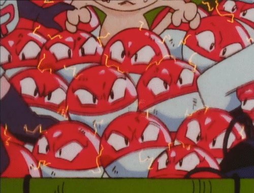 Pokémon GIF: Jigglypuff faces four Electrode by itself
