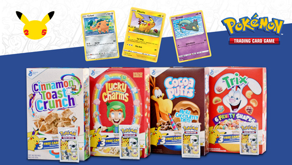 Three-card Pokémon TCG booster packs are now available in General Mills cereal boxes for a limited time. Read on below to learn more: Three-card Pokémon TCG booster packs in General Mills Cereal Boxes Go cuckoo for Pokémon TCG cards with General Mills for a limited time. If you're looking for an excuse to eat delicious … Continue reading Pokémon TCG booster packs now available in General Mills cereal boxes including Golden Grahams, Trix, Cocoa Puffs, Cinnamon Toast Crunch and Lucky Charms