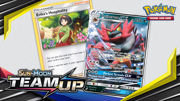 Close look at the new Pokémon TCG cards Erika’s Hospitality and Incineroar-GX from Sun & Moon—Team Up