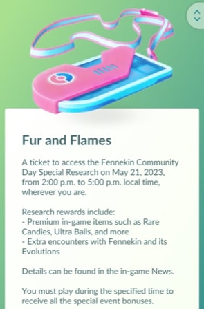 Niantic has announced new events for Pokémon GO. Read on below to learn more: Fennekin’s Not All Hot Hair on Pokémon GO May 2023 Community Day This event heats up with bonuses, four-star raids, and Delphox that know the Charged Attack Blast Burn. Keep your ears open, Trainers, because we’ve got the hot scoop on the … Continue reading May Pokémon GO Community Day featuring Fennekin and Shiny Fennekin now underway in Europe, the Middle East, Africa and India from 2 p.m. to 5 p.m. local time, trades require 50 percent less Stardust and one additional Special Trade can be made