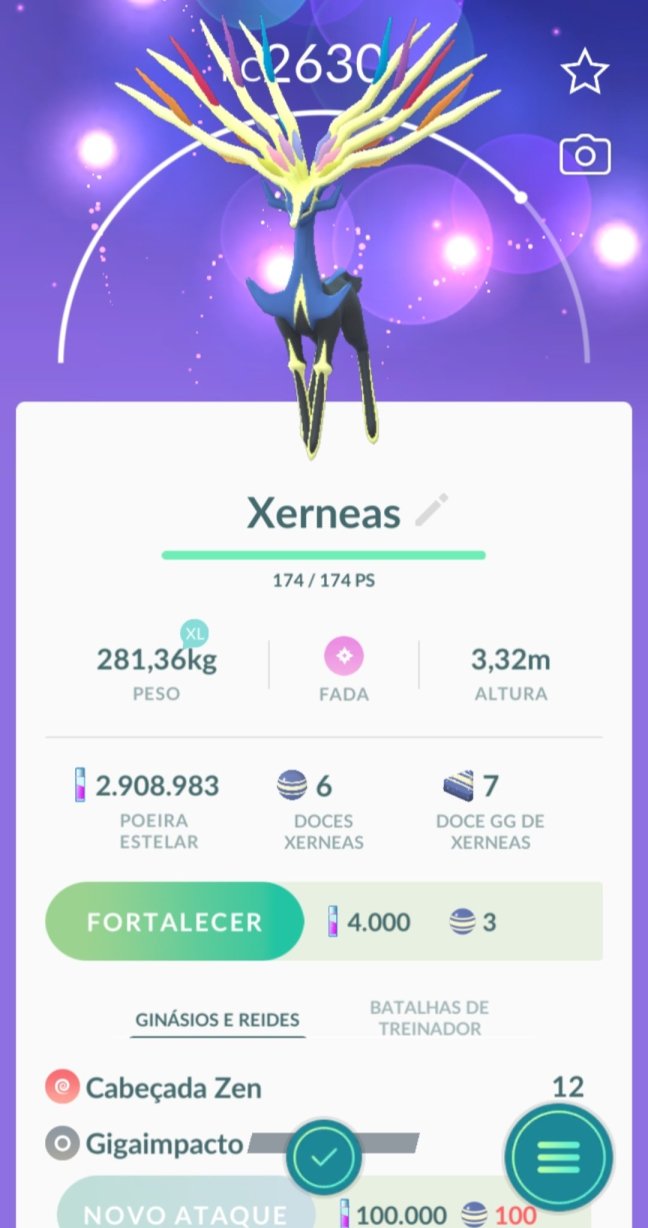 Pokémon GO screenshot of Xerneas caught during the Luminous Legends X event