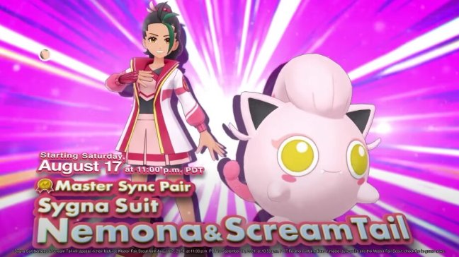 Sygna Suit Nemona & Scream Tail and Professor Oak & Nidorino will soon be added to Pokémon Masters EX as new sync pairs