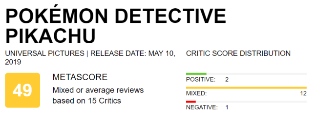 The reviews are in for the first-ever live-action Pokémon film, POKÉMON Detective Pikachu, which currently has a Metascore of 49 out of 100 based on 15 critics. To see what several outlets had to say about the latest Pokémon movie, check out the review excerpts below: IGN - 8/10 Smith’s character gives the story an … Continue reading Review roundup: POKÉMON Detective Pikachu has a Metascore of 49 out of 100